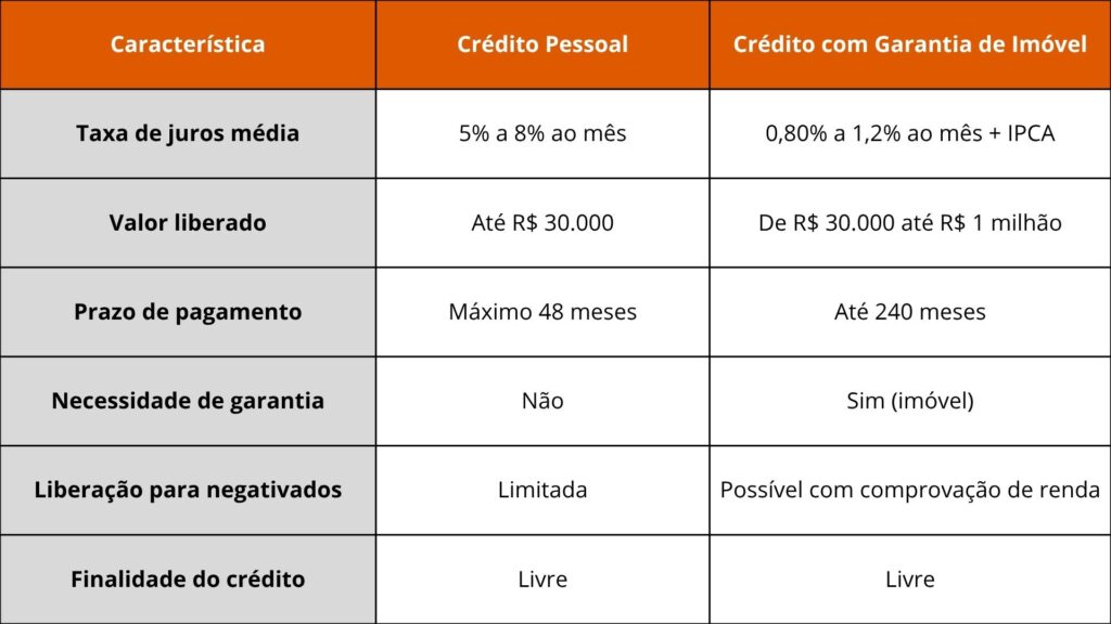 Comparativo: Crédito Pessoal vs. Crédito com Garantia de Imóvel